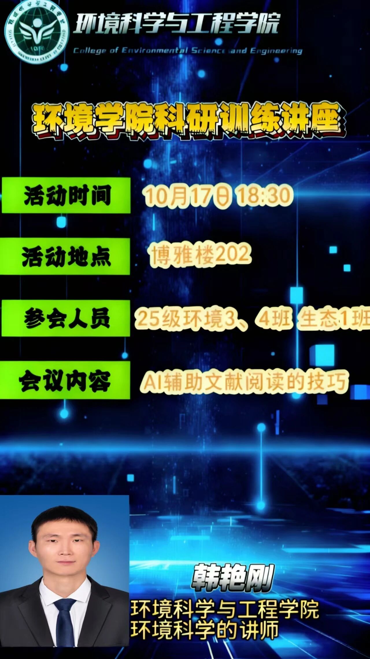 环境学院科研训练讲座预告(三)
