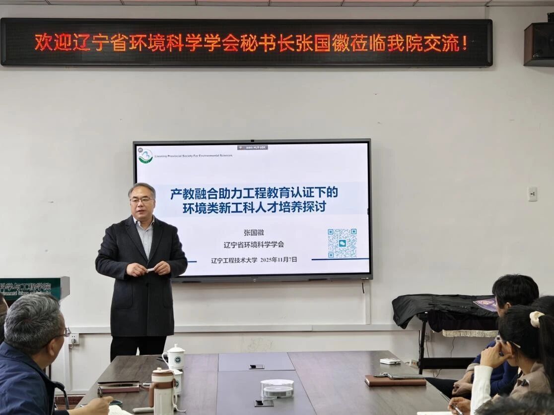 2025年11月7日下午,环境科学与工程学院在知行楼206会议室举办了“产教融合助力工程教育认证下的环境类新工科人才培养探讨”学术讲座,此次会议由辽宁省环境科学学会秘书长张国徽主讲,深度解读了工程教育认证新标准,并给予对专业建设的建议,给现场师生带来前瞻性分析。我院赵晓亮院长、徐颖副院长、水土保持生态修复研究院吕刚院长、环境工程系主任汤家喜、环境生态工程系主任王东丽与环境学院全体教师及学生代表共同出席了本次讲座。