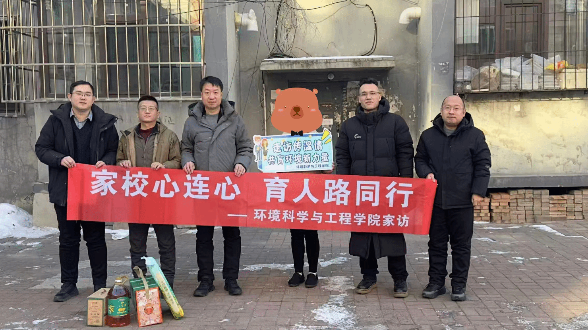 为深入落实立德树人根本任务,进一步搭建家校沟通桥梁,1月22日,党委学生工作部副部长张建双、环境学院党委副书记蒋思、副院长刘宝勇、团委书记肖鹏、班导师王琪前往抚顺开展寒假家访活动。