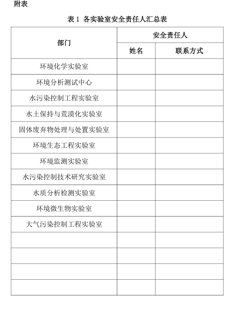 各实验室安全责任人汇总表